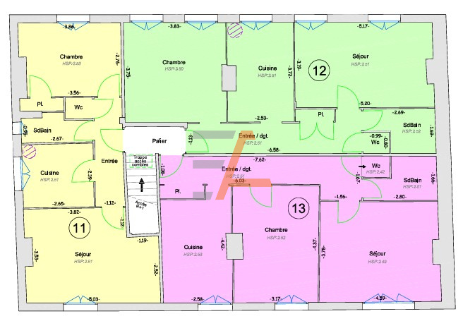 - et au 2ème étage de 3 T2 de 42 à 55m² (refaits en 2022)
