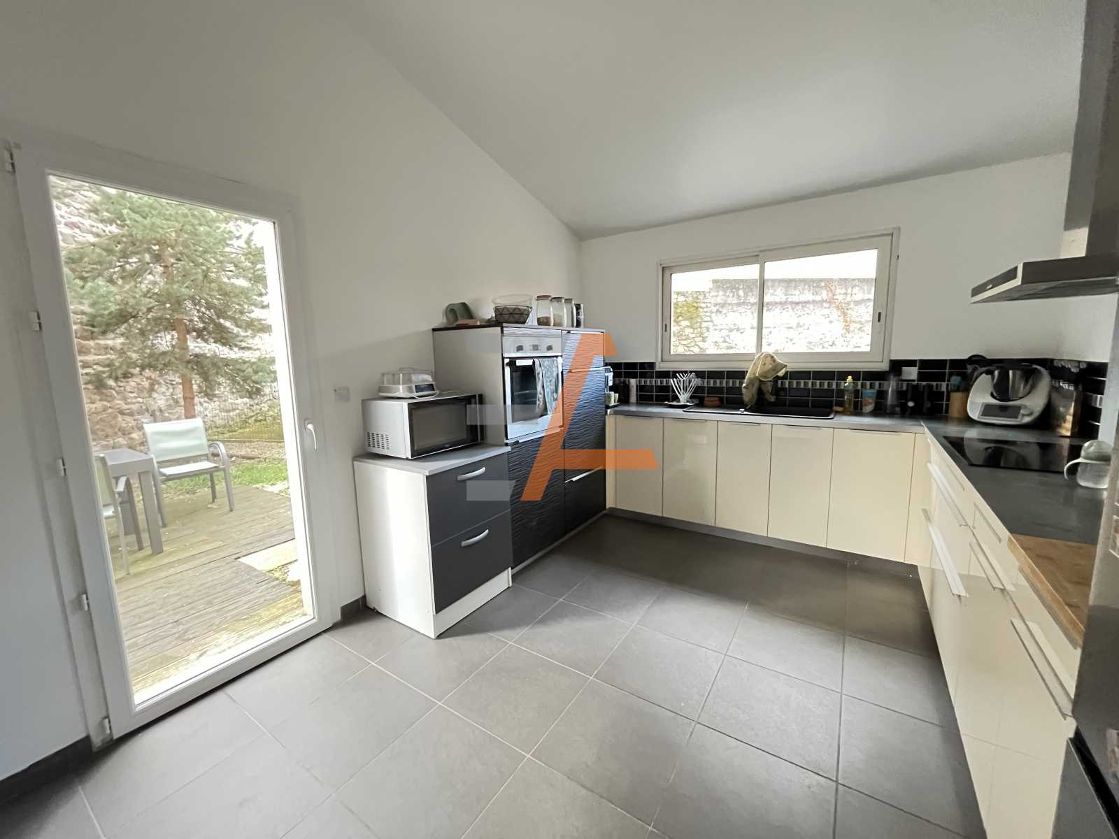 La maison se compose au rdc, d'une belle entrée avec rangement et accès au garage, d'un grand séjour salle à manger d'eniron 35m² ,d'une cuisine de 15m² semi-indépendante toute équipée. La cuisine est la pièce à vivre ont un accès direct sur la terrasse et le jardin ( environ 300m²). On trouve également un wc avec lave main.
